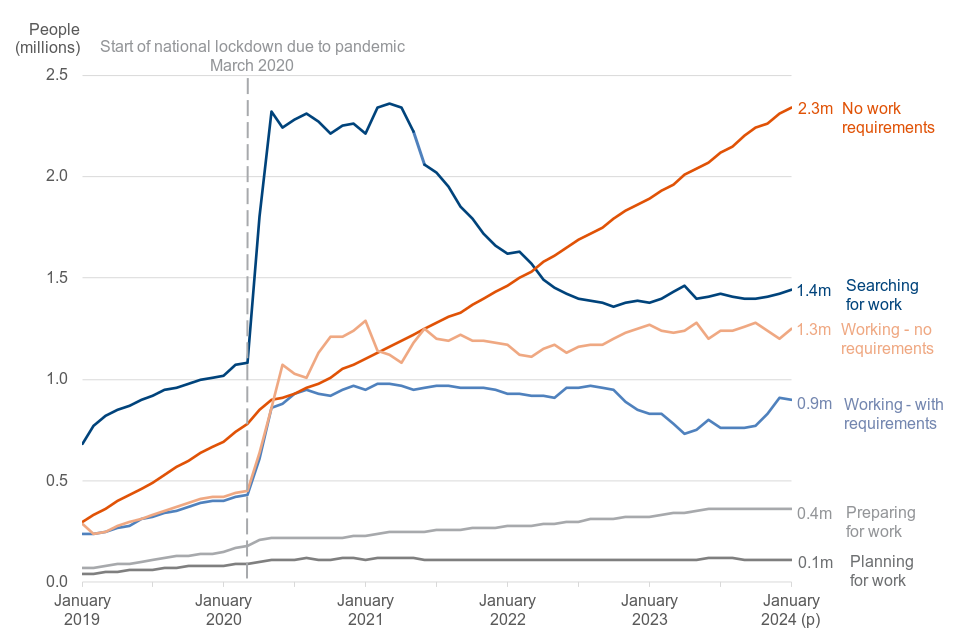Source: DWP, Universal Credit statistics, 29 April 2013 to 11 January 2024